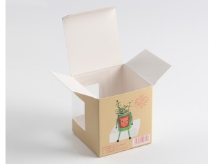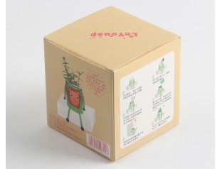 高檔簡易紙盒,采用250g單銅紙,四色印刷,盒身選用PVC透明窗口。將卡通的盆栽的圖文印刷在包裝盒的表面,直觀的表達了包裝盒里的產(chǎn)品。卡通的圖案,結(jié)合產(chǎn)品屬性,給人輕松,愉快的購物體驗。