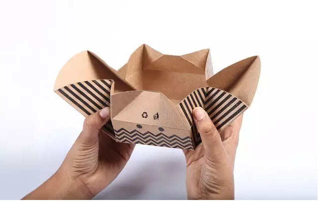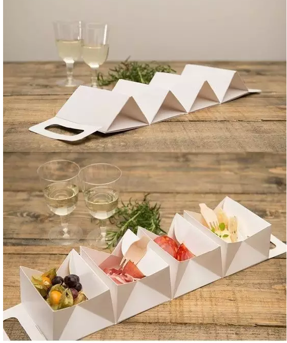 這樣的紙盒包裝對(duì)于吃貨來(lái)說(shuō)簡(jiǎn)直是個(gè)福利,對(duì)愛(ài)吃的人來(lái)說(shuō),一次性能吃到多種食物是一件多么幸福的事啊。這紙盒包裝在掰開(kāi)后有三個(gè)獨(dú)立的小三角,這三個(gè)小三角里可以放不同的食物,簡(jiǎn)直不要太方面?。?/span>