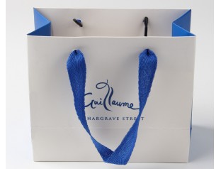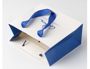 這款t恤紙袋的袋身給人方正大氣,但又不缺少流線圓潤的元素,藍、白相間的顏色搭配給人渾然一體的感覺。t恤本來就給人以一種青春活力之感,用來包裝它的t恤紙袋當然也要是青春靚麗的啦,而藍色和白色就是活力慢慢的顏色。紙袋的文字logo設計讓它有了一絲調皮感。簡約的設計使得t恤紙袋就像個超凡脫俗的精靈,大氣又不失清新,客人見到無不駐足欣賞。