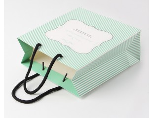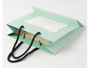看到這個服裝禮品袋的第一一眼就被它身上小清新的氣質(zhì)給吸引住了,條紋元素今年可是時尚界的寵兒,看來包裝廠家的設計師們也不甘落后啊,趕上潮流了。