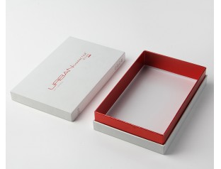 這個襯衫禮盒定做選用的材質(zhì)是雙銅紙,雙面銅版紙是銅版紙的一種,就是雙面涂布,兩面都具有很好的平滑度,印刷出來的產(chǎn)品都很精美;素雅的顏色,簡約的圖文排版,整個禮盒給人的感覺就是干練,有氣場,作為襯衫的禮盒,這樣的氣質(zhì)再好不過了;天地蓋圍邊設計使包裝盒更加的精致,圍邊的紅色裱紙與紅色的logo互相呼應,真的是一片和諧啊。