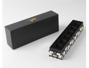 盒子內(nèi)配有凹槽的內(nèi)托,這個是用來存放小包裝的茶葉包,這款茶葉禮盒做工精細(xì),印刷精美,尺寸可按需求定制。