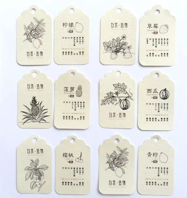 標(biāo)簽——畫(huà)出了每種水果的生長(zhǎng)形態(tài),標(biāo)簽背面是水果的營(yíng)養(yǎng)價(jià)值。人們可以通過(guò)這個(gè)標(biāo)簽來(lái)了解水果,等于上了一堂生物課??!