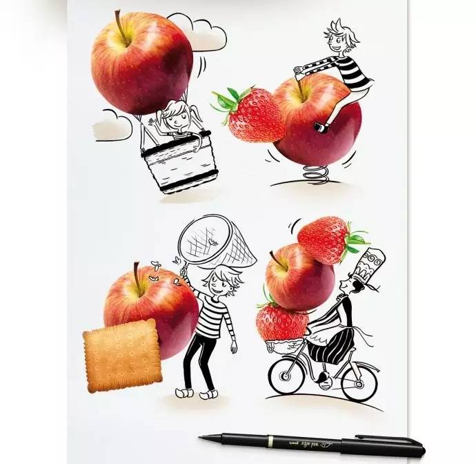 水果與漫畫(huà)的完美結(jié)合,充滿幸福和朝氣的畫(huà)風(fēng),毫無(wú)違和感,簡(jiǎn)直神配。這種水果包裝設(shè)計(jì)我就算不吃水果我也要買(mǎi),因?yàn)槲乙绰?huà)啊~