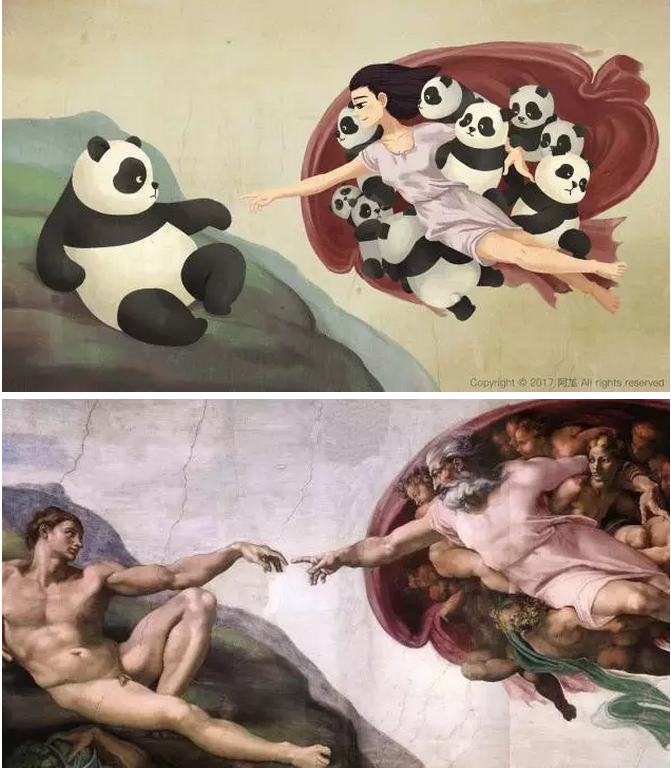 隨著網(wǎng)絡(luò)技術(shù)的不斷發(fā)展、信息傳播的手段越來越多,以前只能去動物園也不一定看得到的國寶通過個大網(wǎng)絡(luò)平臺與大家見面,人們可以通過直播看到國寶的日常生活狀態(tài),也因此被它們呆萌的性格給圈粉。當(dāng)然,國寶的魅力不僅限于中國境內(nèi),那些外國友人也被這些圓滾滾的國寶給迷得神魂顛倒,這不,最近,有個名叫阿尨along的插畫師火了。他的一組大膽、新奇、可愛畫風(fēng)的插畫,受到了網(wǎng)友瘋傳,畫中的主角是咱們的國寶大熊貓滾滾。在他的插畫中,滾滾有著各種各樣的身份——它時而變作國外名畫中的主角,一會成為中國古代名畫的人物,一會又是知名電影中的形象。讓人不得不感嘆阿尨的腦洞之大。