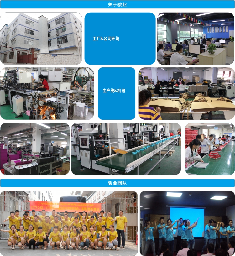 廣州駿業(yè)包裝實業(yè)有限公司創(chuàng)建于 2001年,是一家以印刷包裝制品為主營業(yè)務(wù)的集設(shè)計、生產(chǎn)、銷售為一體的一般納稅企業(yè),主要生產(chǎn)各種精品包裝盒、紙袋、吊牌,其主要應(yīng)用于服飾、皮具、化妝品、保健品、禮品、首飾、茶葉、酒類、電子產(chǎn)品及其它日用制品等行業(yè),并通過了德國萊茵認(rèn)證、BV認(rèn)證、SGS認(rèn)證和WCA認(rèn)證.