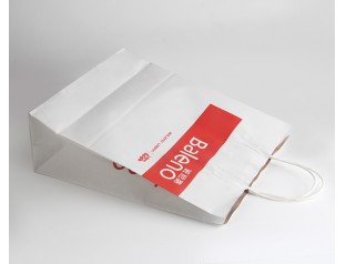 此款手提紙袋采用白牛皮作為原材料,故又叫做白牛皮紙袋,單色印刷,黏紙繩白牛皮紙手感柔軟,厚度均勻印刷效果的優(yōu)點(diǎn)就是鮮亮,節(jié)省油墨,可以有效的降低成本此款白牛皮紙袋,白色LOGO的印刷搭配打底的大紅色印刷,可以使其LOGO更顯眼,彰顯其品牌價(jià)值。