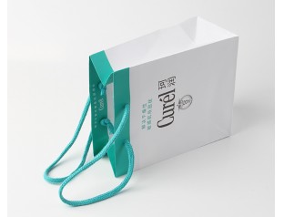 此款禮品包裝紙袋采用250g單銅紙,雙色印刷,過啞膠,自扣尼龍圓繩手提紙袋設(shè)計(jì)走小清新的風(fēng)格,整體采用白色作為主打色,搭配天藍(lán)色紙袋設(shè)計(jì)的提手處選用了天藍(lán)色的尼龍圓繩,小清新的白色和藍(lán)色搭配是藍(lán)天白云這樣一對經(jīng)典的組合,給人舒心的感覺