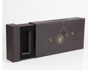 這個禮品盒定制選用的材質(zhì)是1000可白板紙為內(nèi)紙,裱紙則是雙銅紙,盒型是抽屜盒,盒身覆啞膠,看起來高貴神秘;可以看到這個禮品盒的表面布滿了用uv印刷出來的文字,在不同的角度可以看到不一樣的效果,這也是防偽的一種方法;盒子的logo采用的是燙金工藝,金燦燦的字體往往能讓人印象深刻,同時(shí)也凸顯了品牌質(zhì)感。