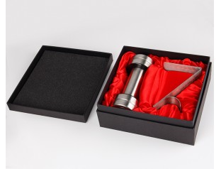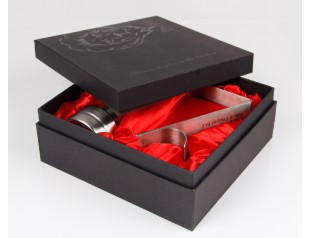 圍邊天地蓋禮盒定制是以雙銅紙作為原料,盒子表面的logo采用uv印刷工藝,覆啞膜;作為五金的包裝盒在盒子內(nèi)鋪了一層色丁布,增加禮盒的高級感,即使裝的是幾塊鐵也不顯得low;盒子表面壓紋處理有質(zhì)感,內(nèi)部做復黑色亞膜處理,底部用紅色的內(nèi)紙裱起來,使盒子更加的精致。